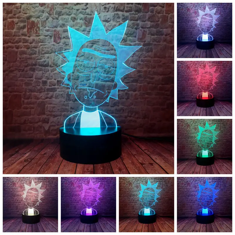TOP Lovely 3D Kids Nightlight LED 7 Colors Changing Sleeping Light Model Rick and Morty Anime action &